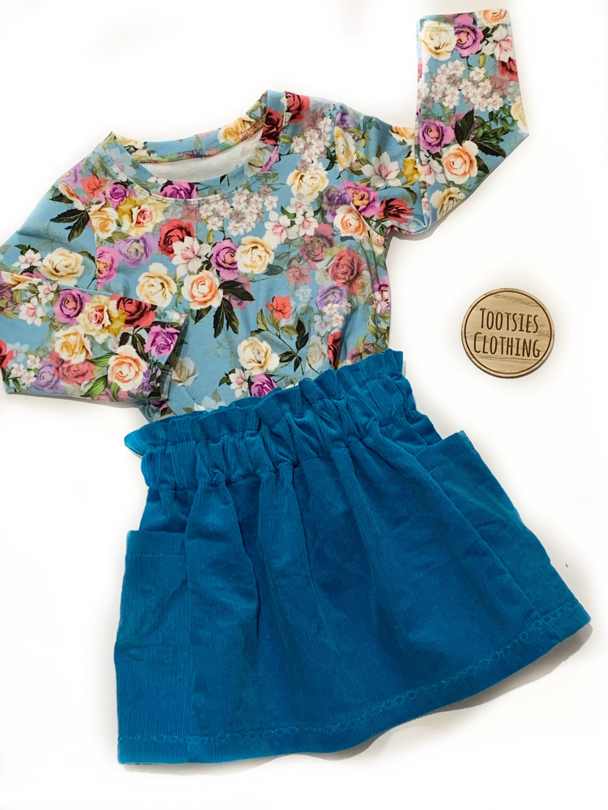 I love these skirts, paper bag waist, huge pockets to be filled with kids treasures. amazing corduroy fabric that's perfect for the autumn and winter.
